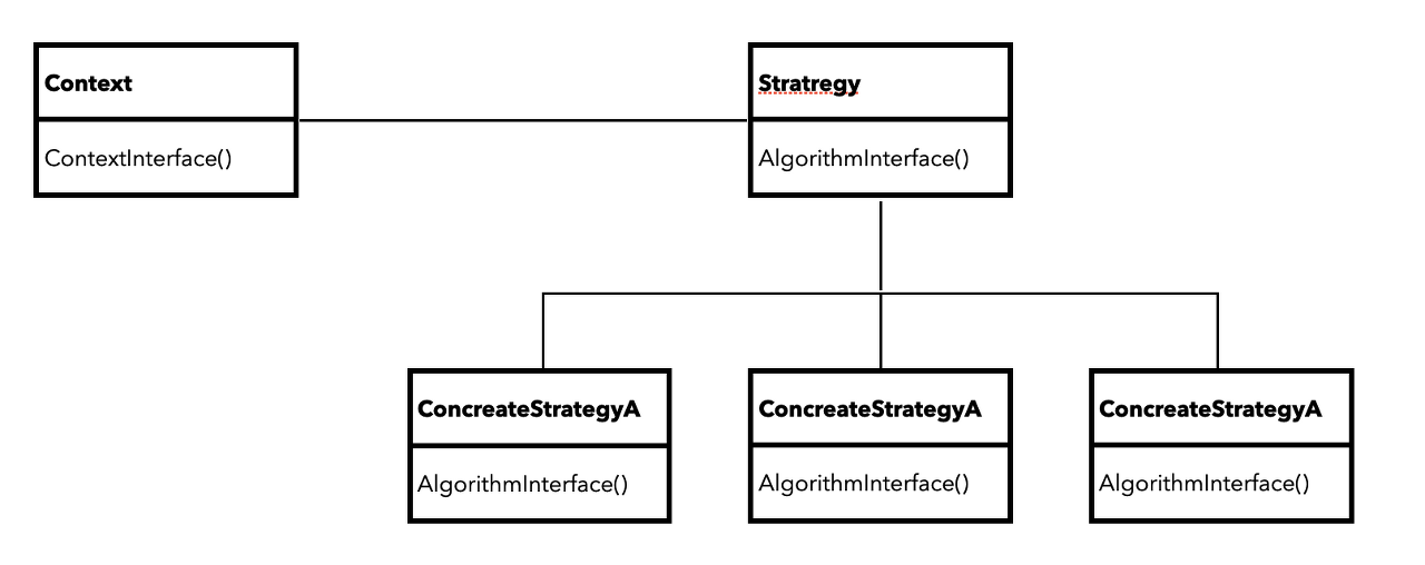 객체들이 할 수 있는 행위 각각에 대해 전략 클래스를 생성하고, 유사한 행위들을 캡슐화 하는 인터페이스를 정의하여, 객체의 행위를 동적으로 바꾸고 싶은 경우 직접 행위를 수정하지 않고 전략을 바꿔주기만 함으로써 행위를 유연하게 확장하는 방법이다.