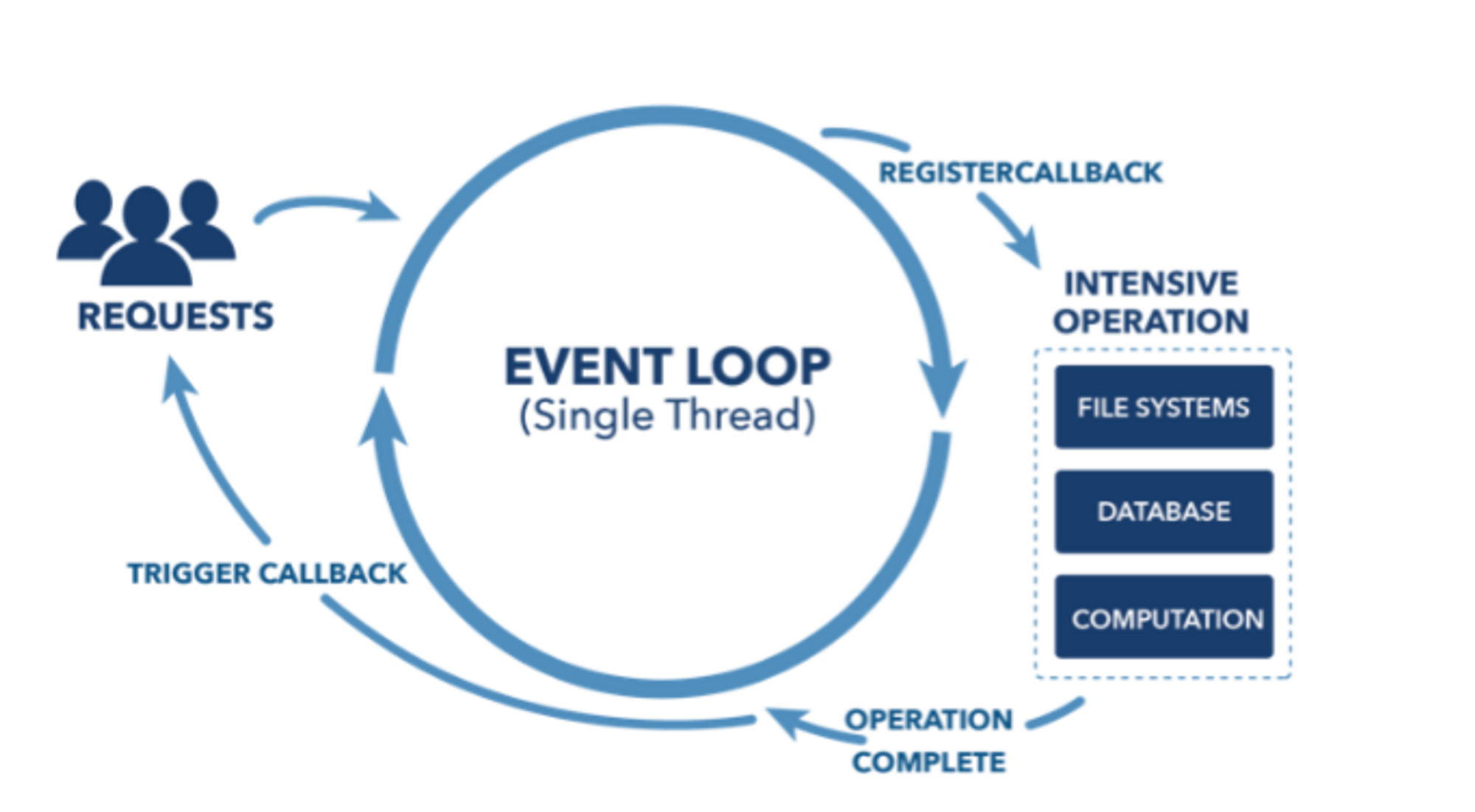 - 이벤트 루프는 IO작업의 완료에 대한 콜백을 발생하고 그 결과를 완래 호출자에게 결과를 보낼 수 있습니다.